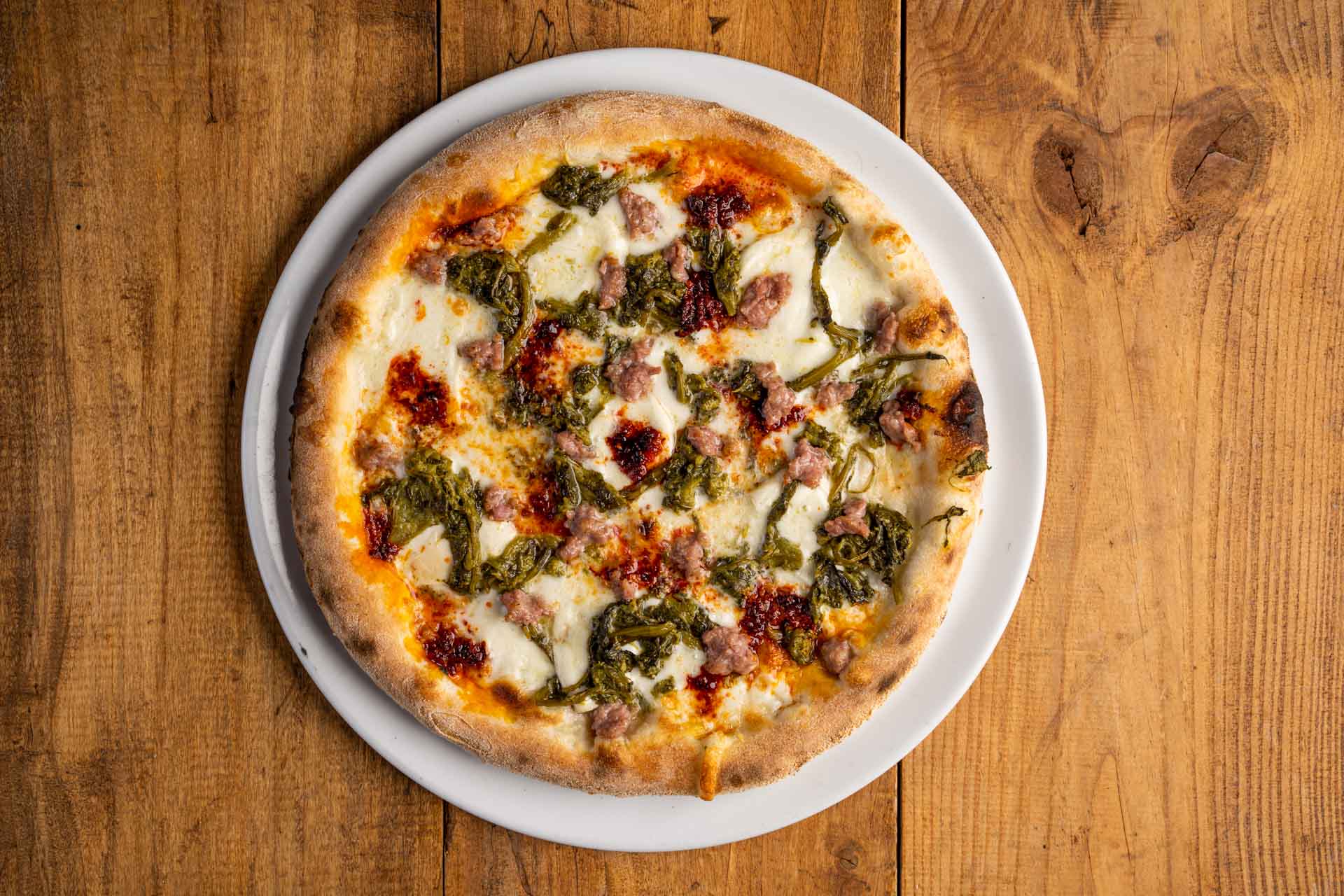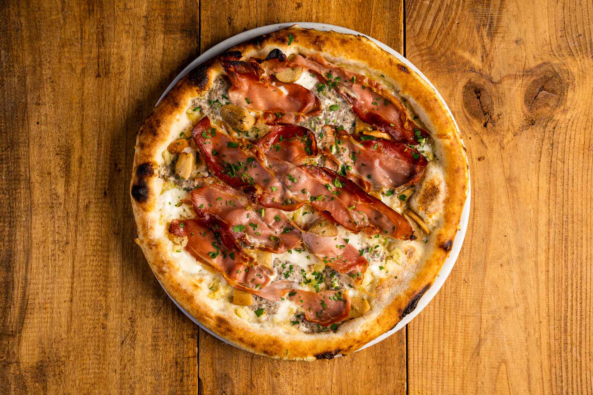specializzata nella cottura in forno a legna. Il menù pizza, disponibile per il servizio serale, offre un'ampia scelta tra le pizze della tradizione e quelle, invece, più creative.